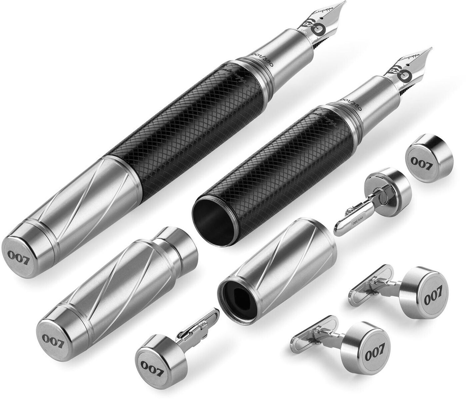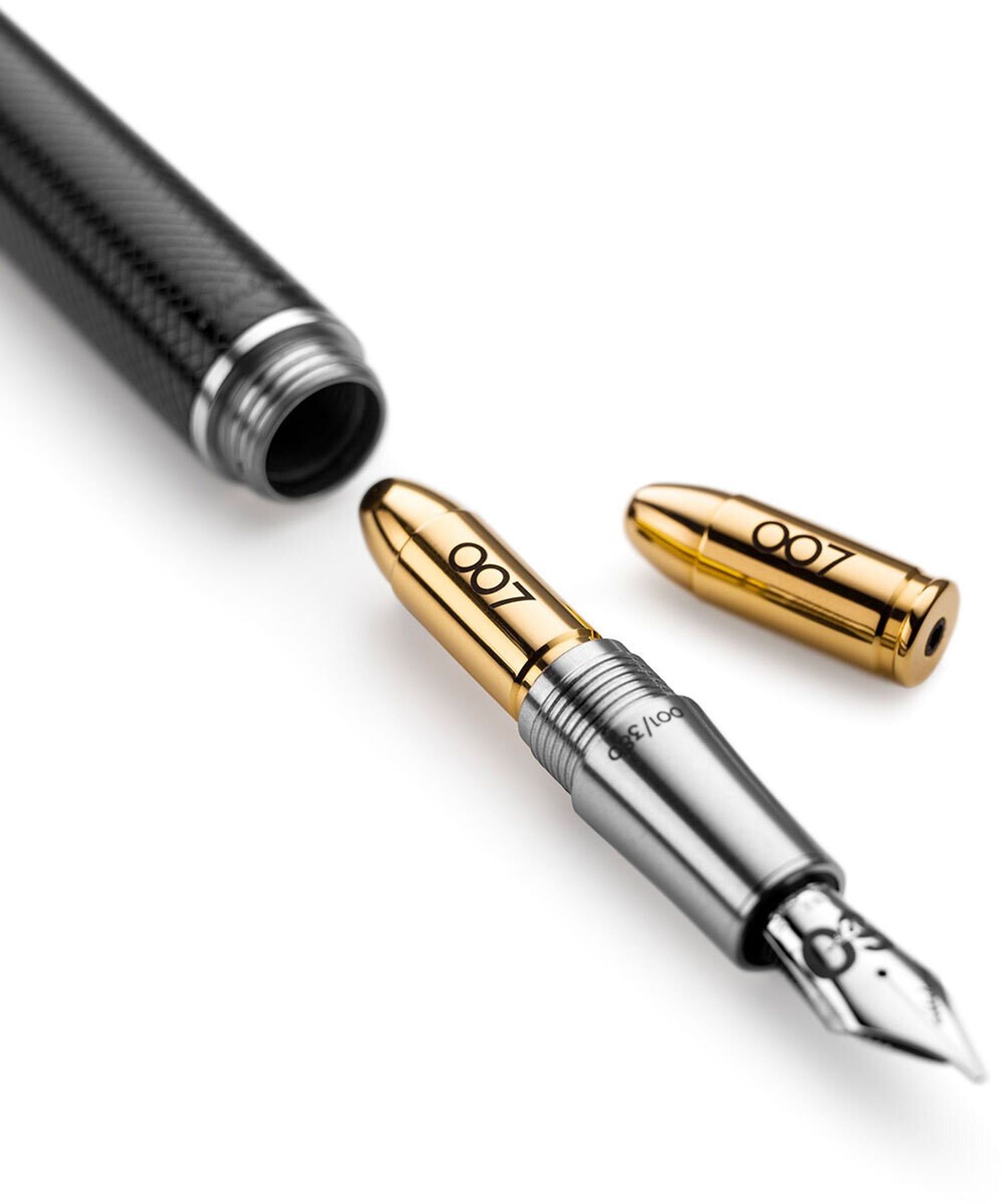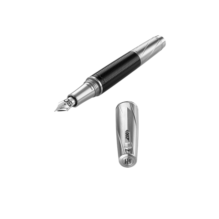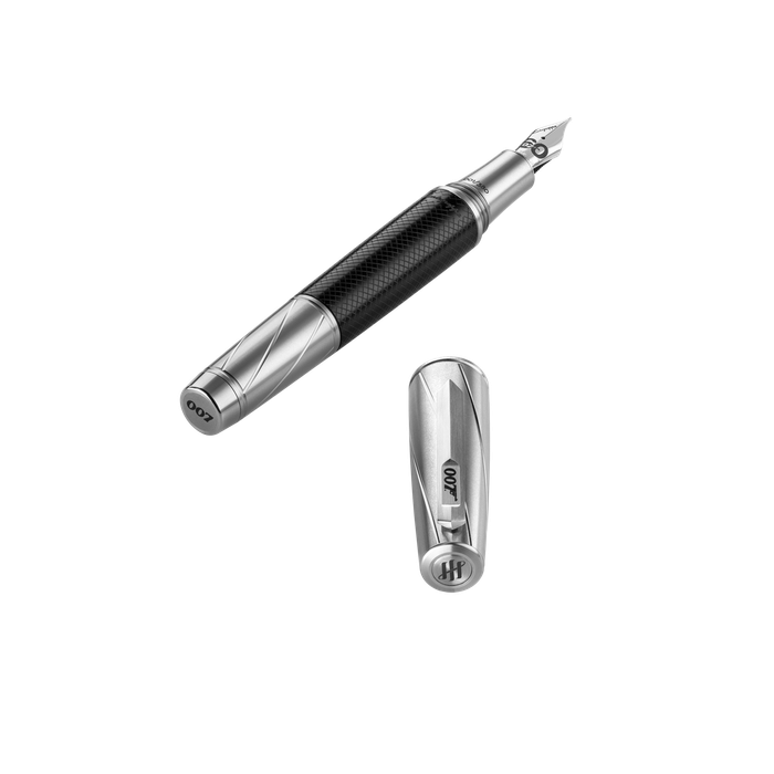 segments invokes the iconic 007 gun-barrel title sequence. Fountain pens