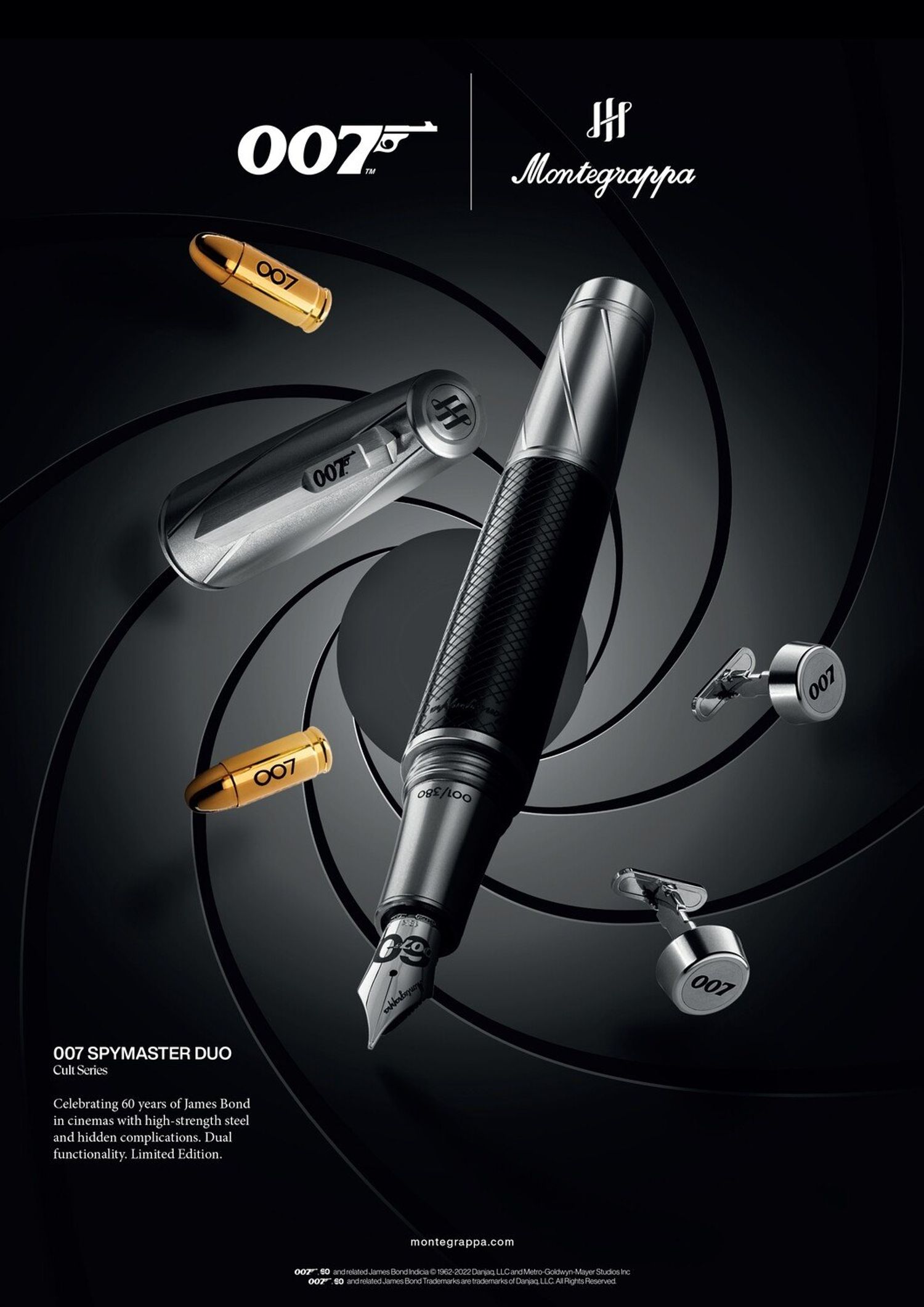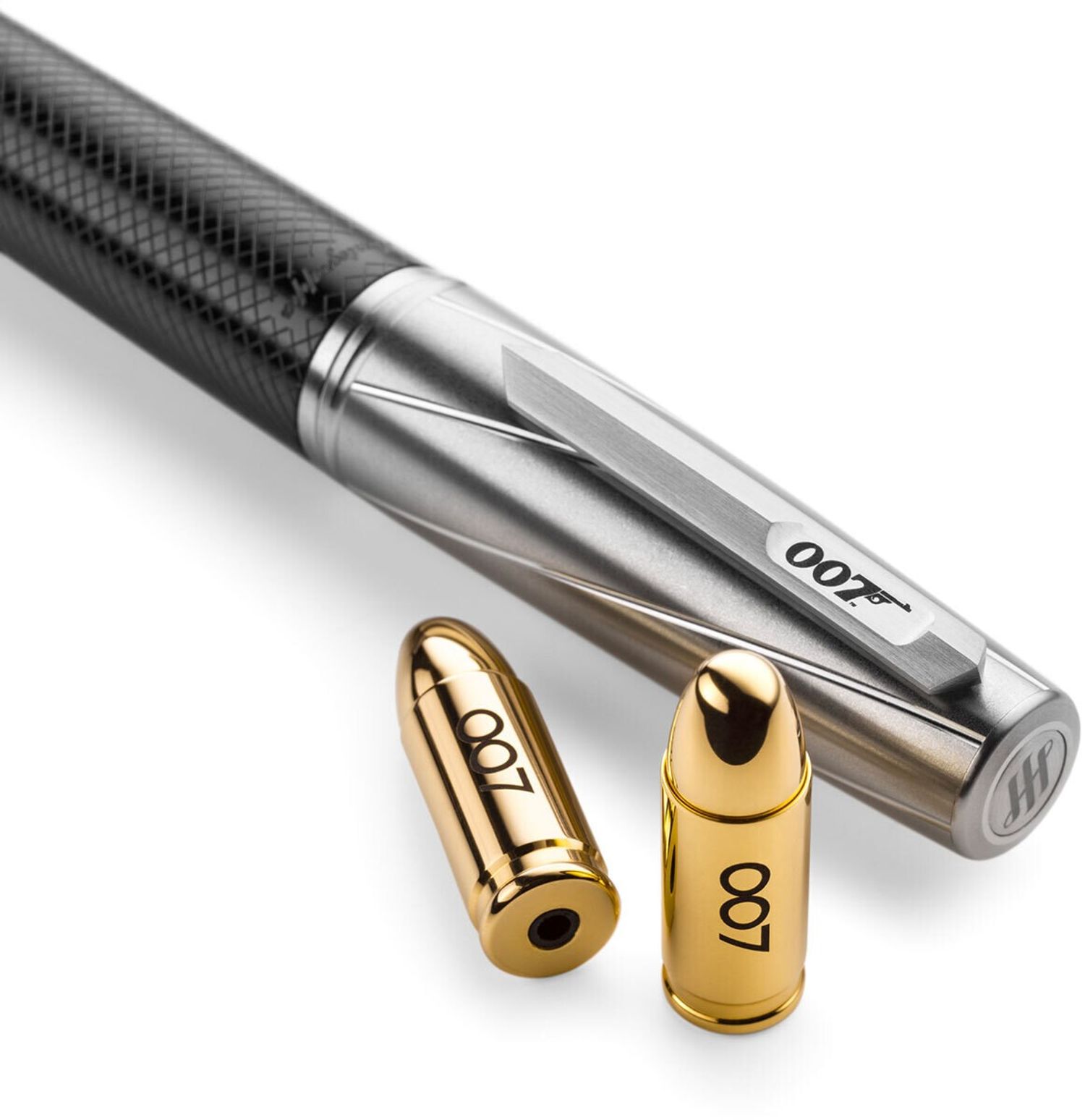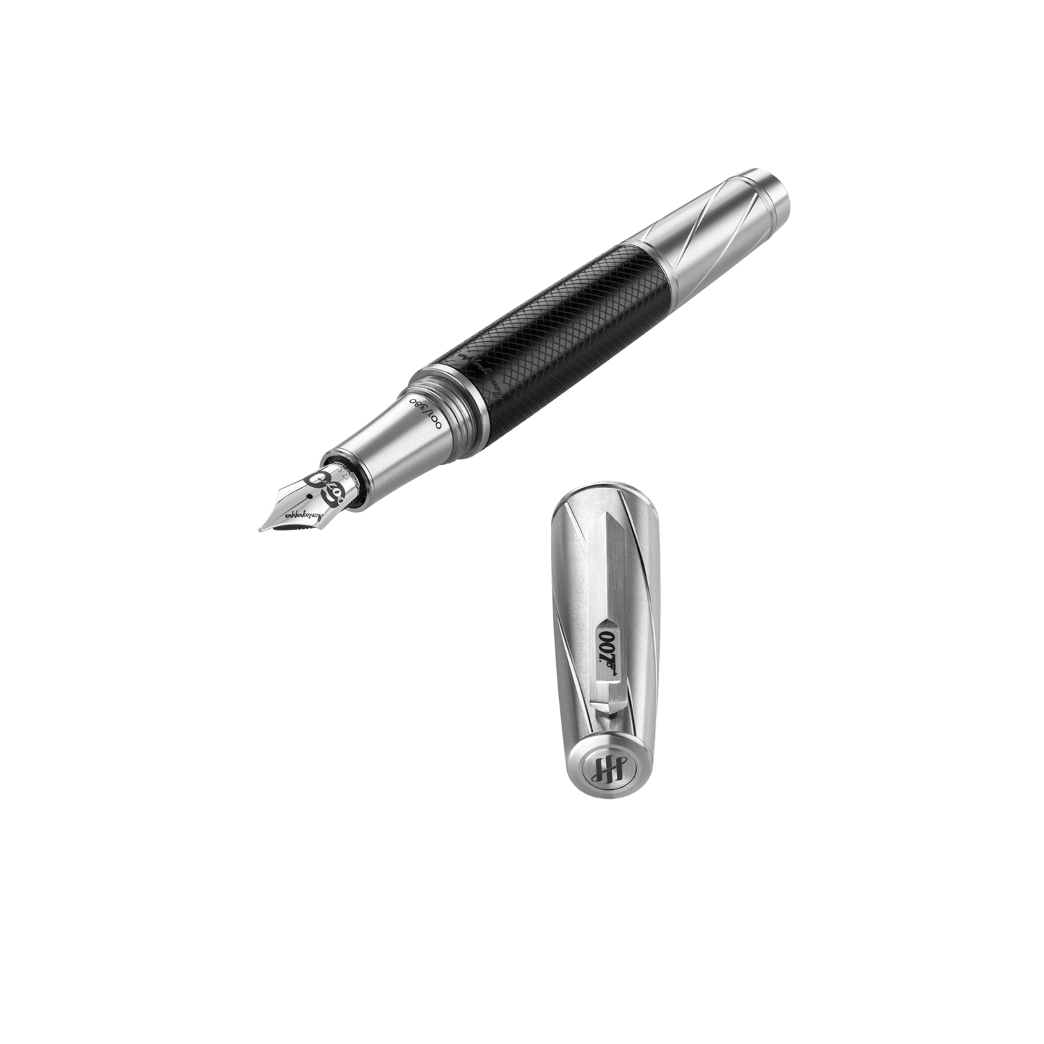 segments invokes the iconic 007 gun-barrel title sequence. Fountain pens