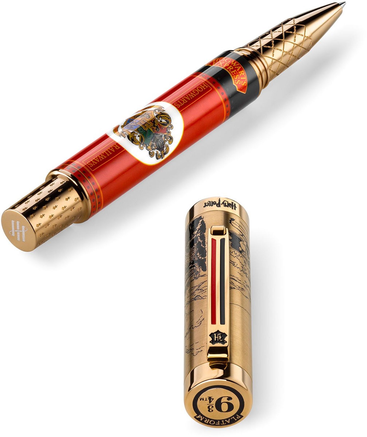 Weighting, finishing and detailing point to a writing instrument primed for academic performance. The Hogwarts school shield and a pair of dapper enamelled stripes decorate a durable, spring-loaded clip.