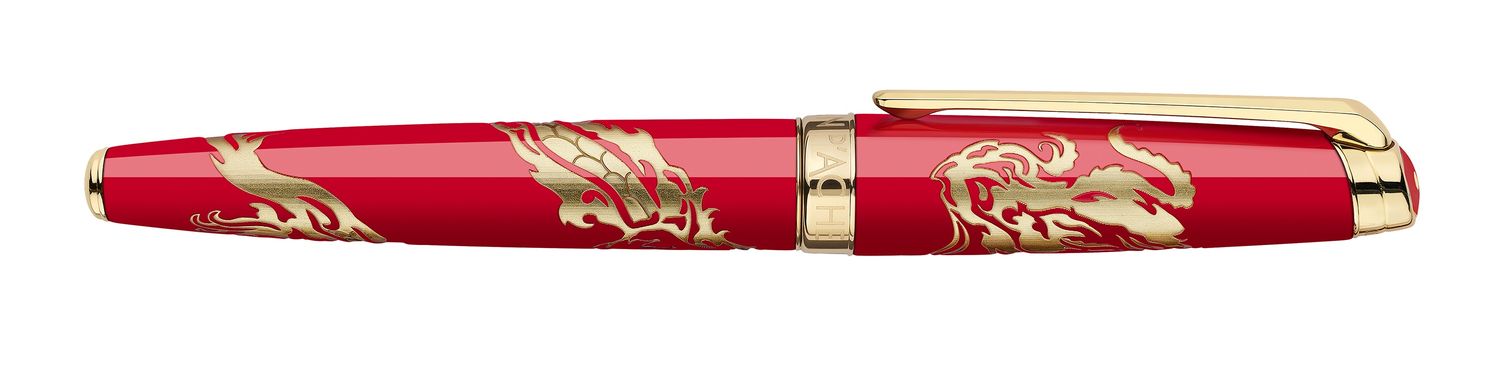 Button carrying the Caran d’Ache identification (red lacquered hexagon)