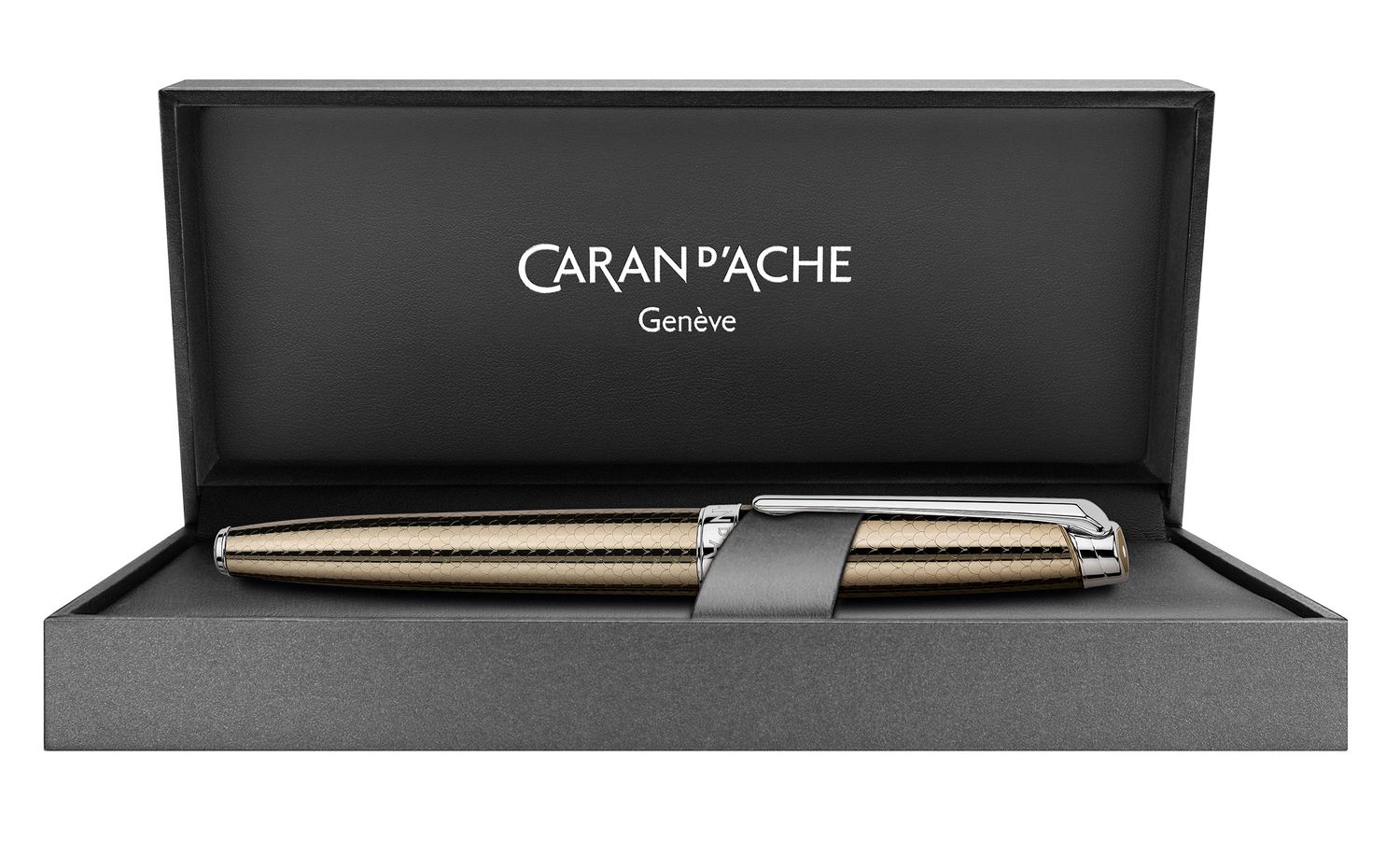 Silver-rhodium-plated button cap, with Caran d'Ache identification (amber lacquered hexagon)