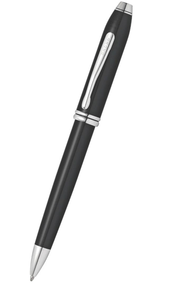 Townsend Black Lacquer Ballpoint Pen with Classic Black Cigar Style Leather Single Pen Case Gift Set