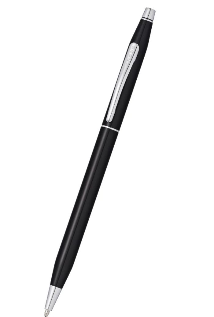 Classic Century Black Lacquer Ballpoint Pen with Classic Black Magnetic Leather Single Pen Case Gift Set