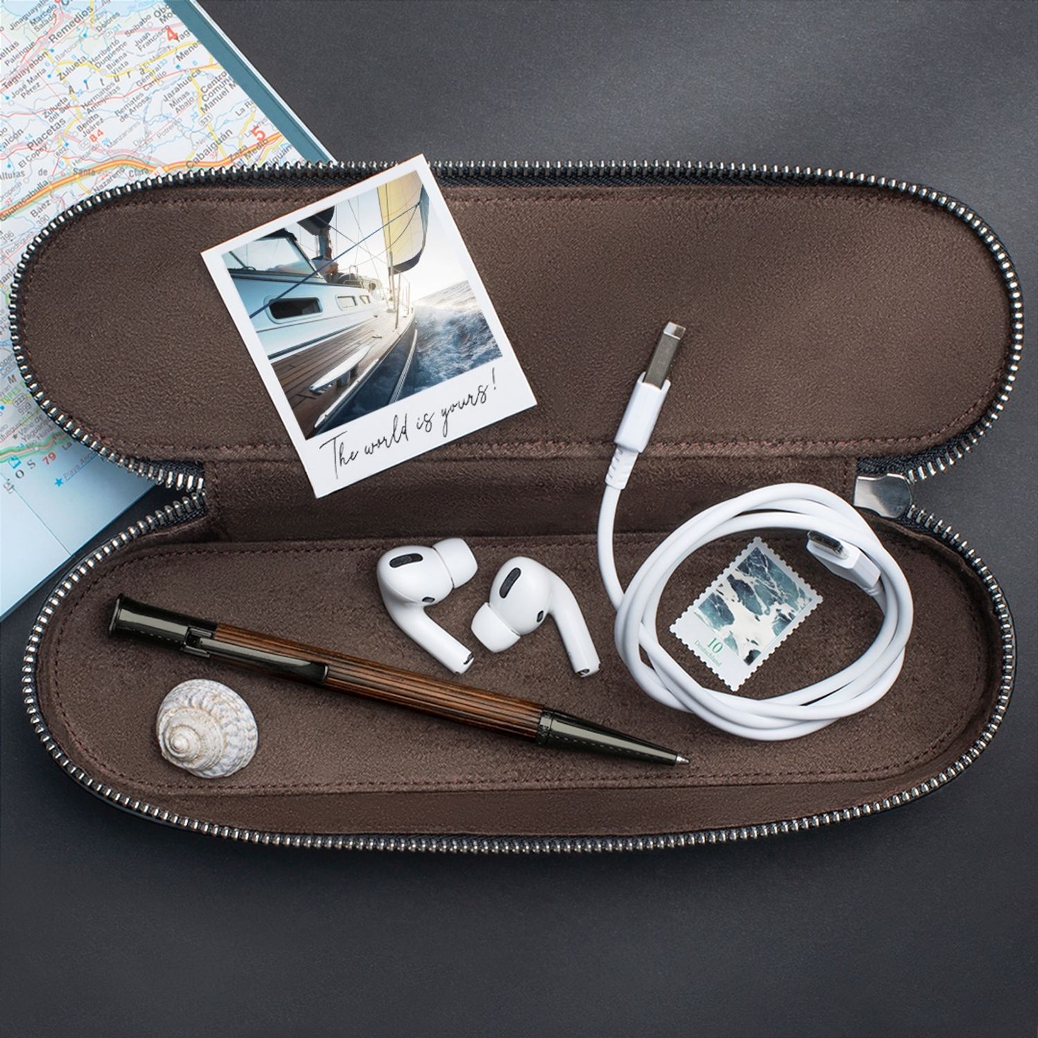 Barrel made of Macassar wood PVD-coated metal parts made of titanium Solid, spring-loaded clip Black, large capacity refill in international standard size Line width B Document-proof Overall dimension: Length 133 mm x Ø 9 mm Weight: 30 g Elegant, wooden gift box included