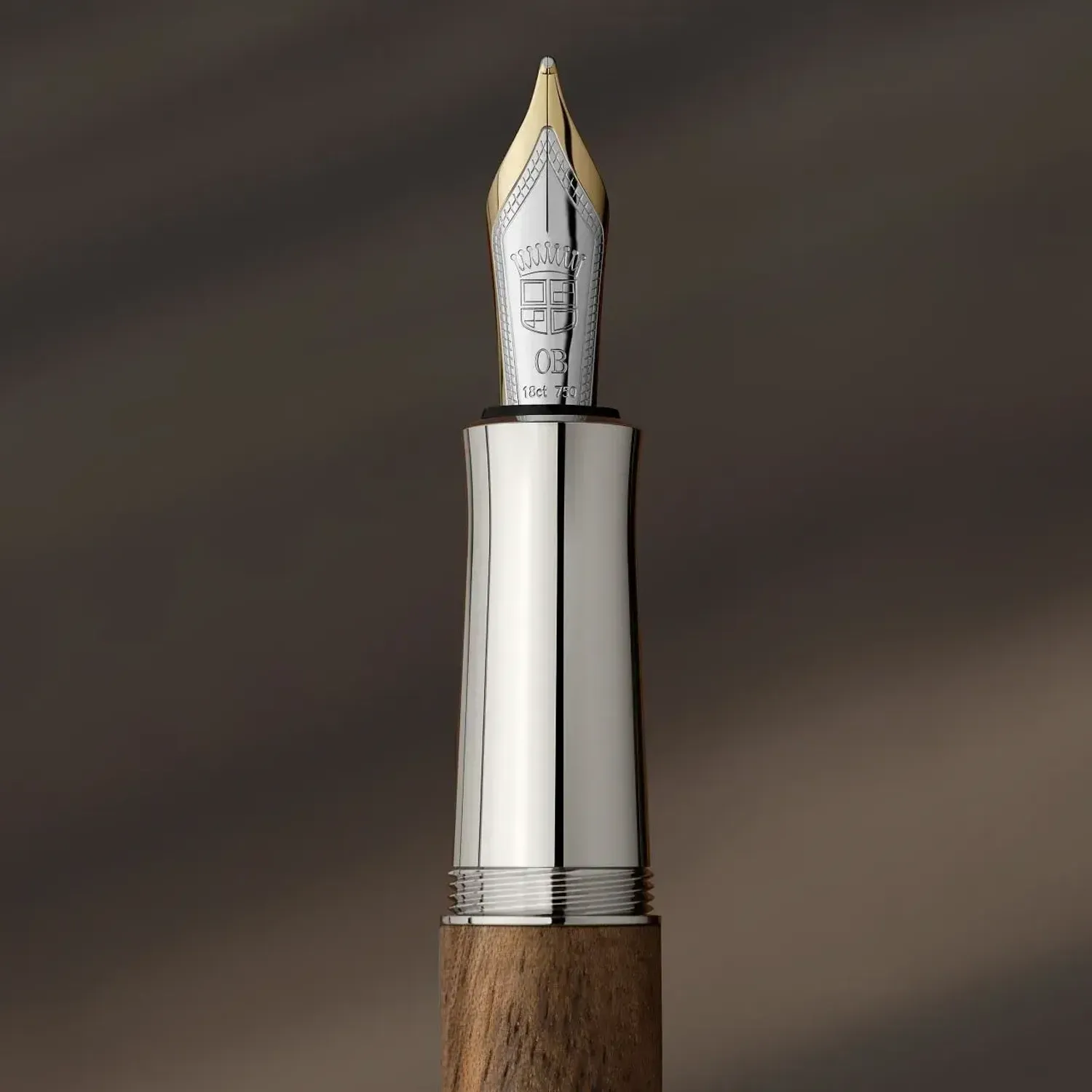 Barrel made of individually grained walnut wood platinum-plated metal parts Solid, spring-loaded clip Handmade, magnum-sized, bicoloured 18-carat gold nib Run in by hand