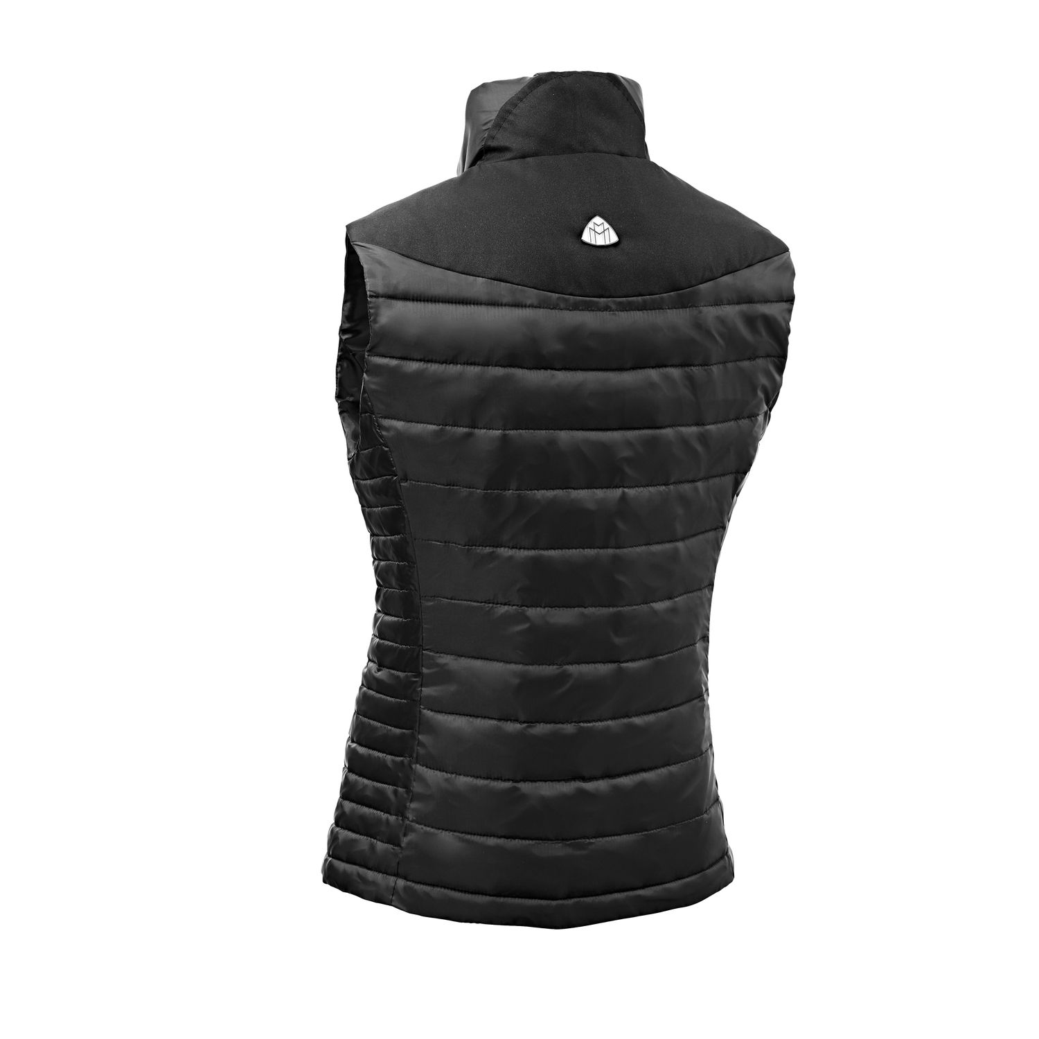 When a combination of comfort and chic is required, the MAYBACH ladies' padded gilet THE WARMTH I is right at the forefront. The water-repellent and windproof outer material is combined with a high-tech padding which ensures a pleasant warmth. A layer of soft fleece on the inside adds extra comfort to the collar and pockets, while the embroidery on the collar edge band displays the Fleur-de-Maybach pattern designed especially for the brand. The discreet hood can be stowed in the collar when not needed. The high-quality palladium-plated metal elements, such as the zipper-tag, the brand logo on the back and the triangular eyelet with fine MAYBACH engraving, pick up the shape of the MAYBACH logo, adding the perfect finishing touch to the look. Material: 100 % Polyester, Care: Mashine wash warm